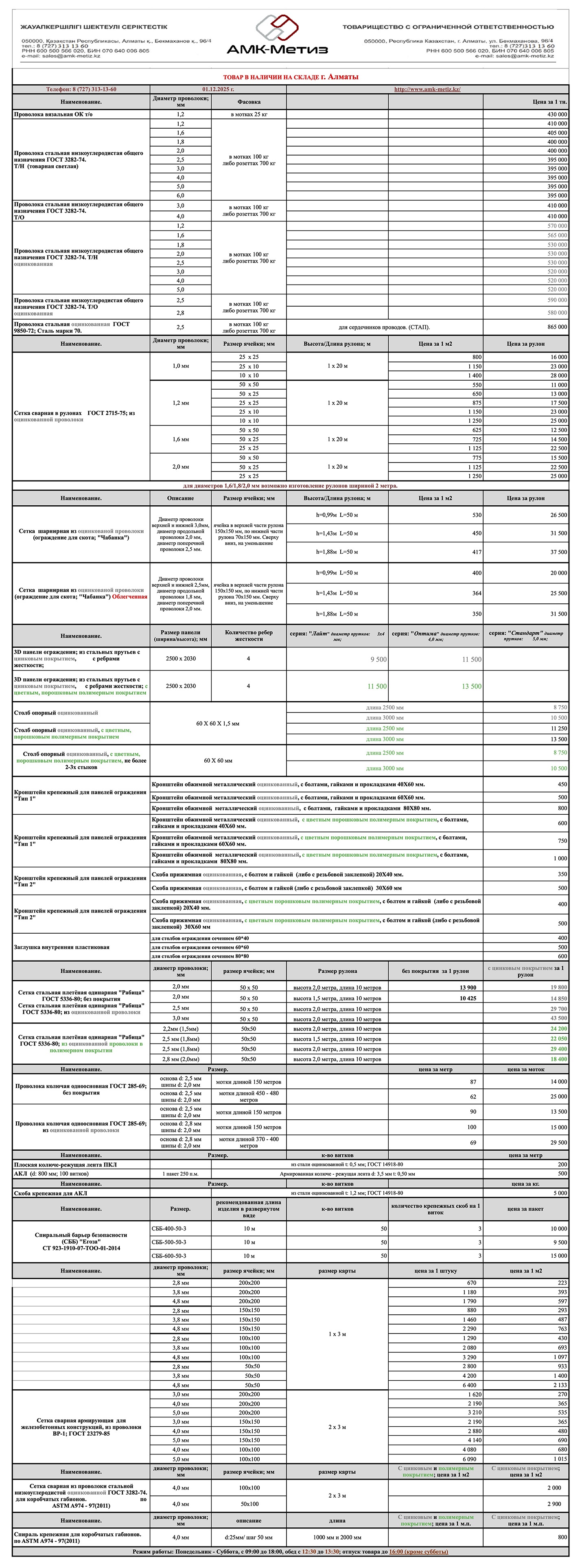 АМК-Метиз ЖШС қоймада бар тауарлар